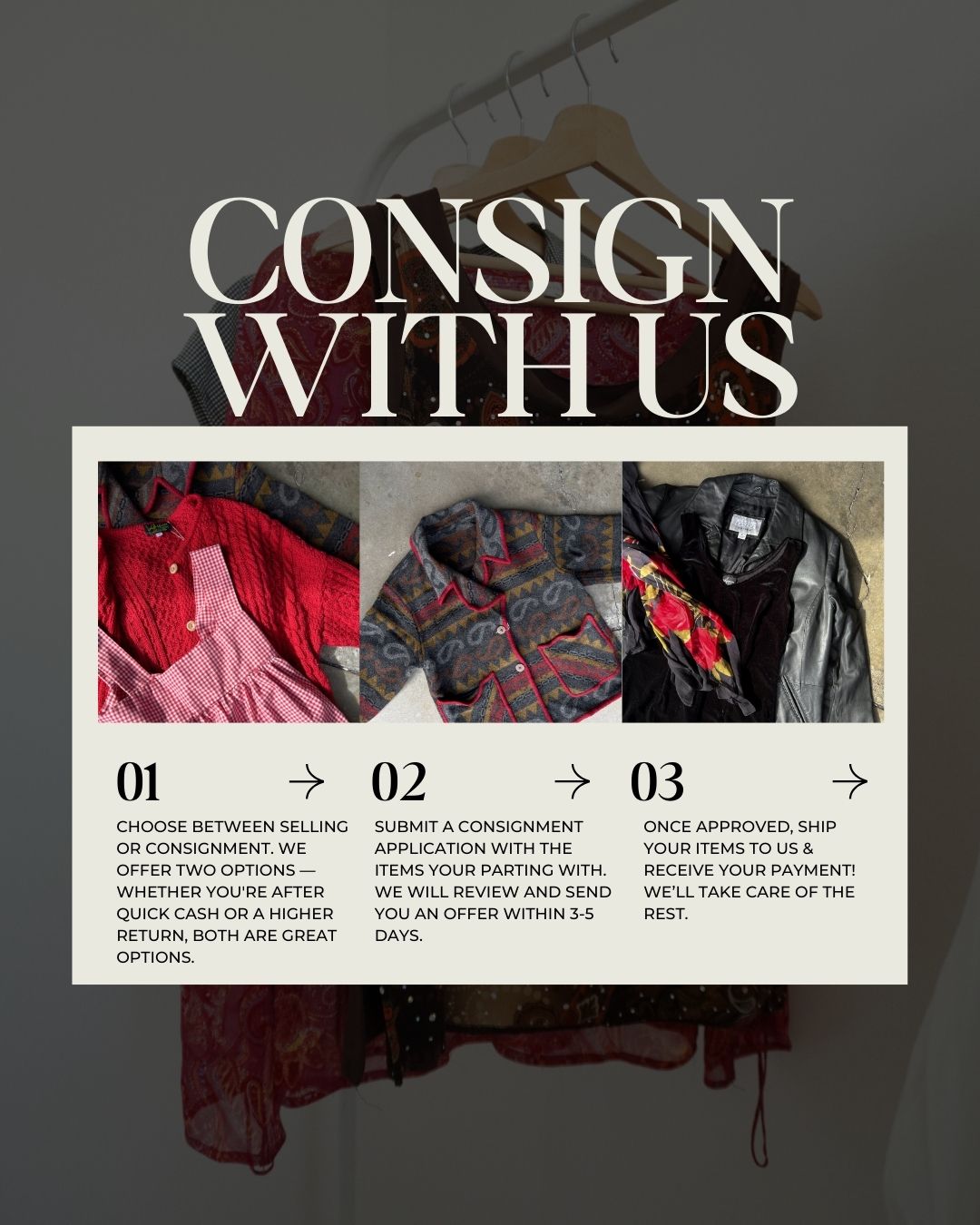 We’re selective to keep the shop curated. If a piece doesn’t fit our aesthetic or standards, we’ll let you know — no hard feelings.